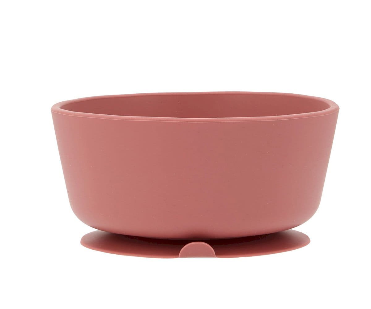 Cuenta con un cuenco de silicona con una práctica ventosa en su base que lo fija en su mesa y una cuchara con mango de silicona y cuchara de acero 316