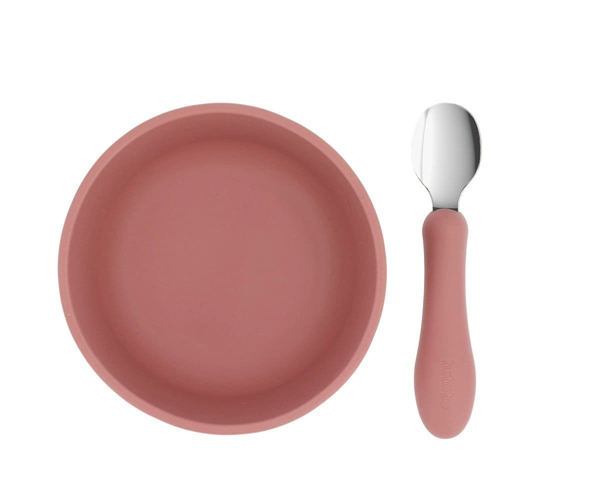 El nuevo set de alimentación de bol con ventosa y cuchara de acero de Tutete es estupendo para que los peques comiencen a practicar solitos.