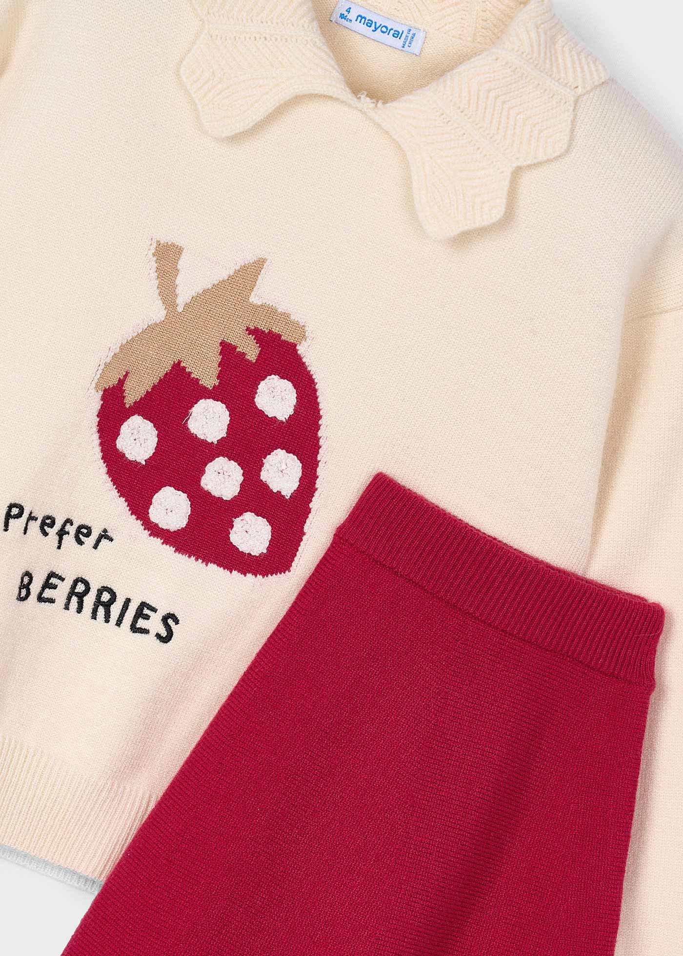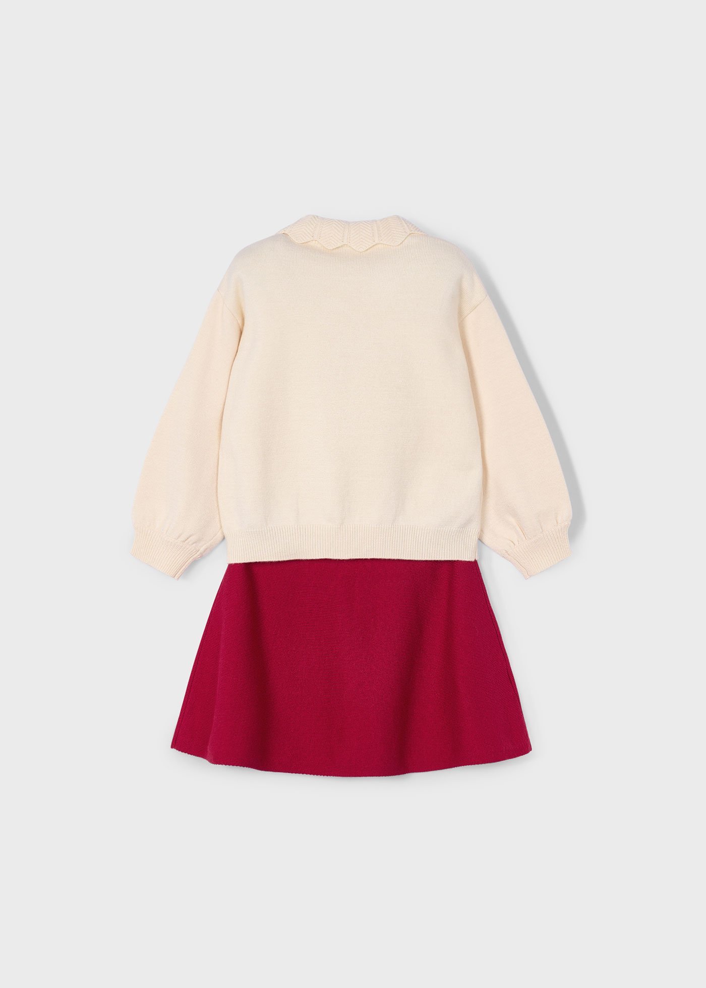 Contiene poliéster reciclado. Conjunto de jersey y falda combinados para niña.