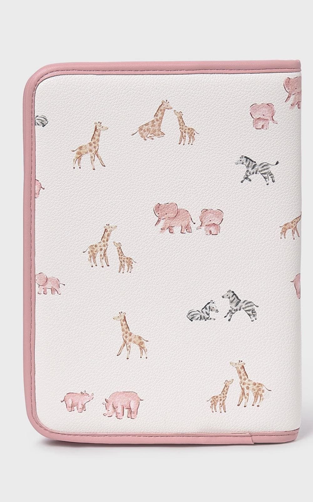 Estiloso portadocumentos de bebé de cuidado diseño, cuenta con compartimentos interiores para una mejor organización. Moderno exterior de polipiel. Diseño estampado.