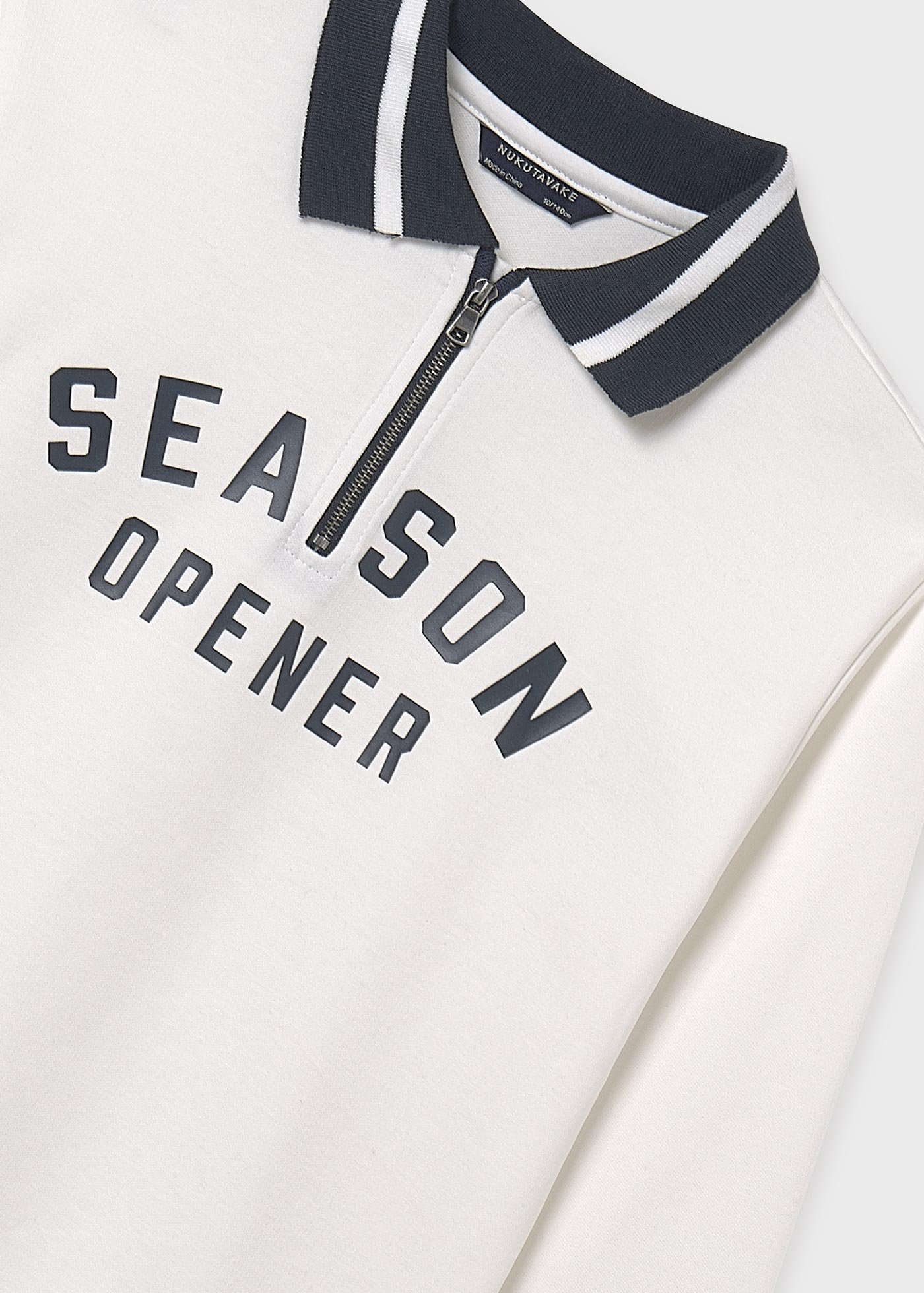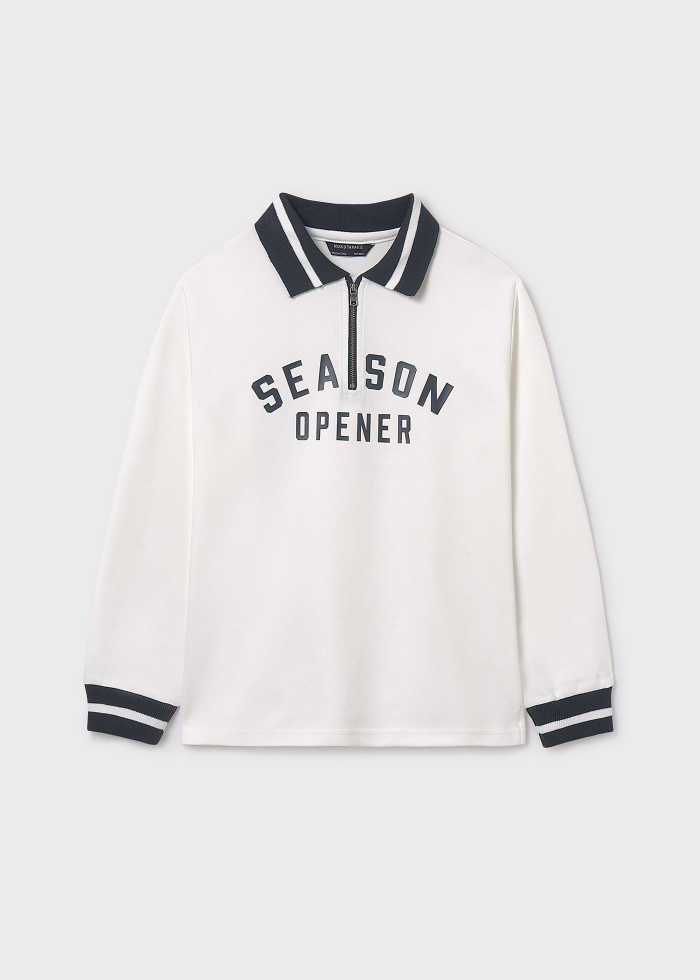 Sudadera de manga larga para chico. Cuello de polo clásico. Elementos de adorno: dibujo en la parte frontal y trasera de la prenda, detalle en relieve (high density print).