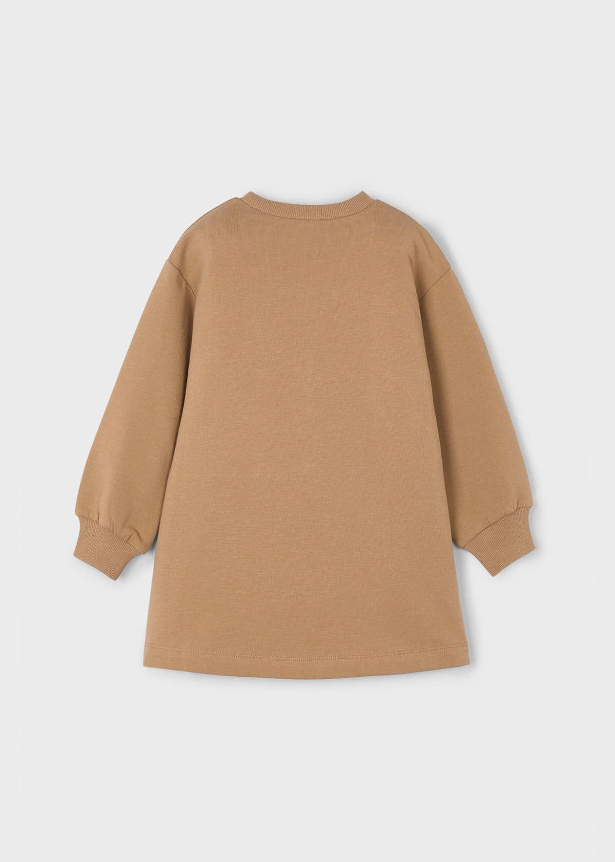 Vestido de manga larga para niña con puños elásticos. Cuello redondo. Suave tejido de algodón elástico. Elementos de adorno: serigrafía (print).